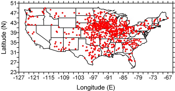 Stations depicted that have at least 80 years of data between 1895 and 2002 during which > 360 days of valid data per year are available.
