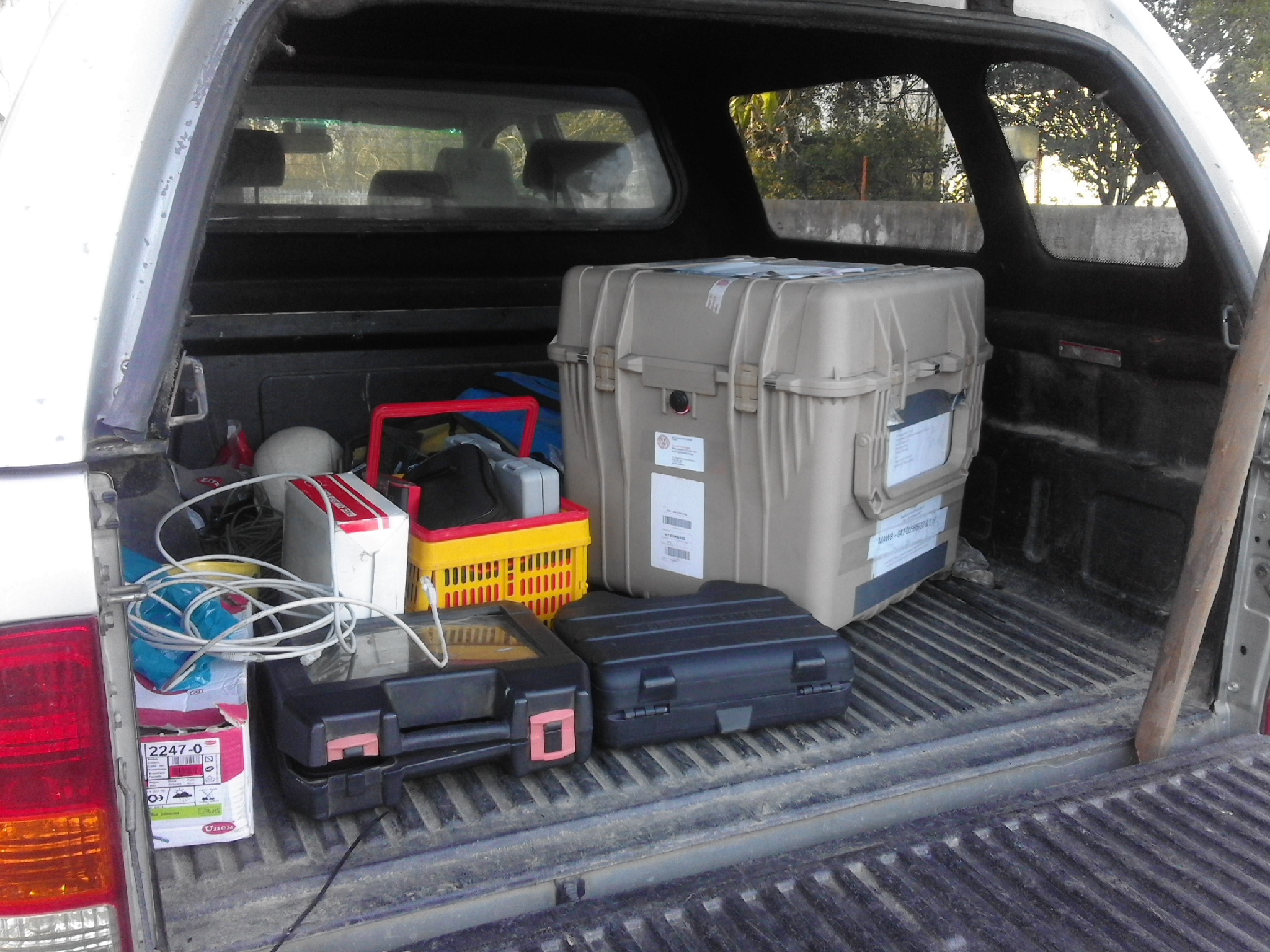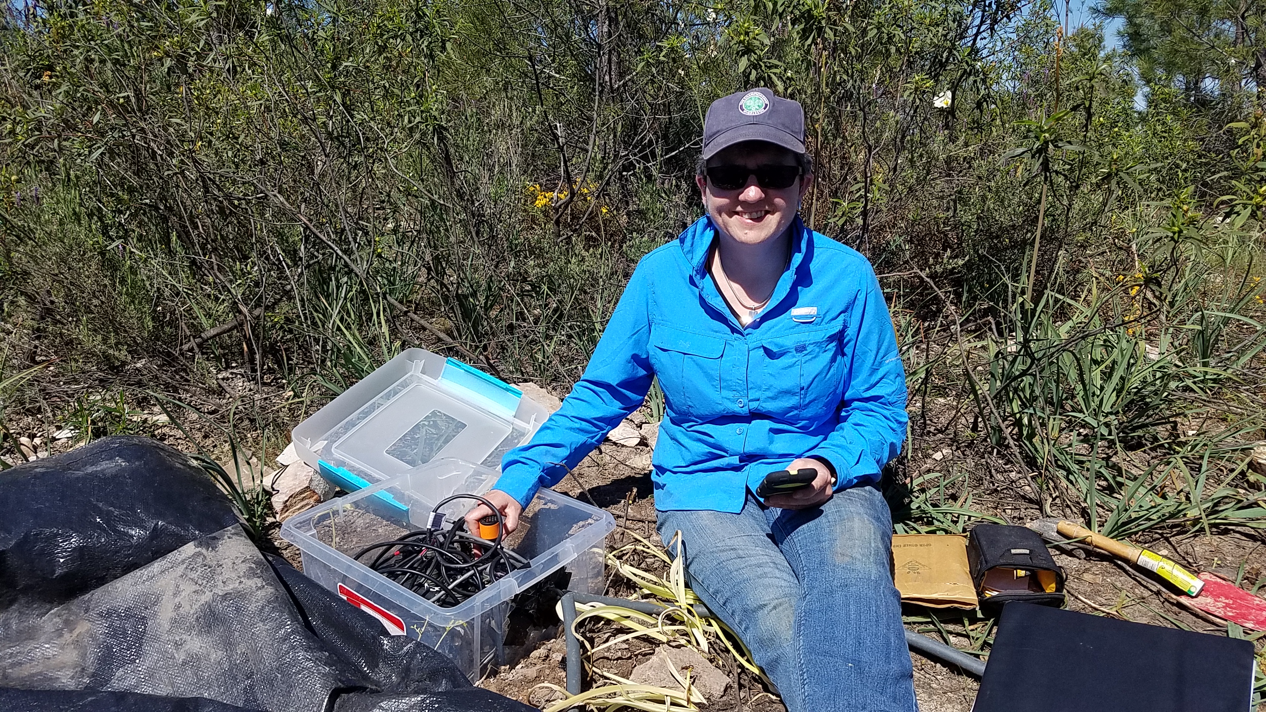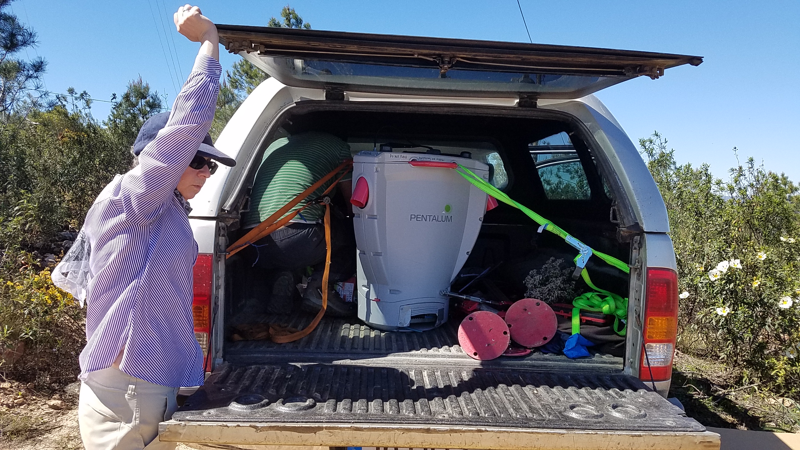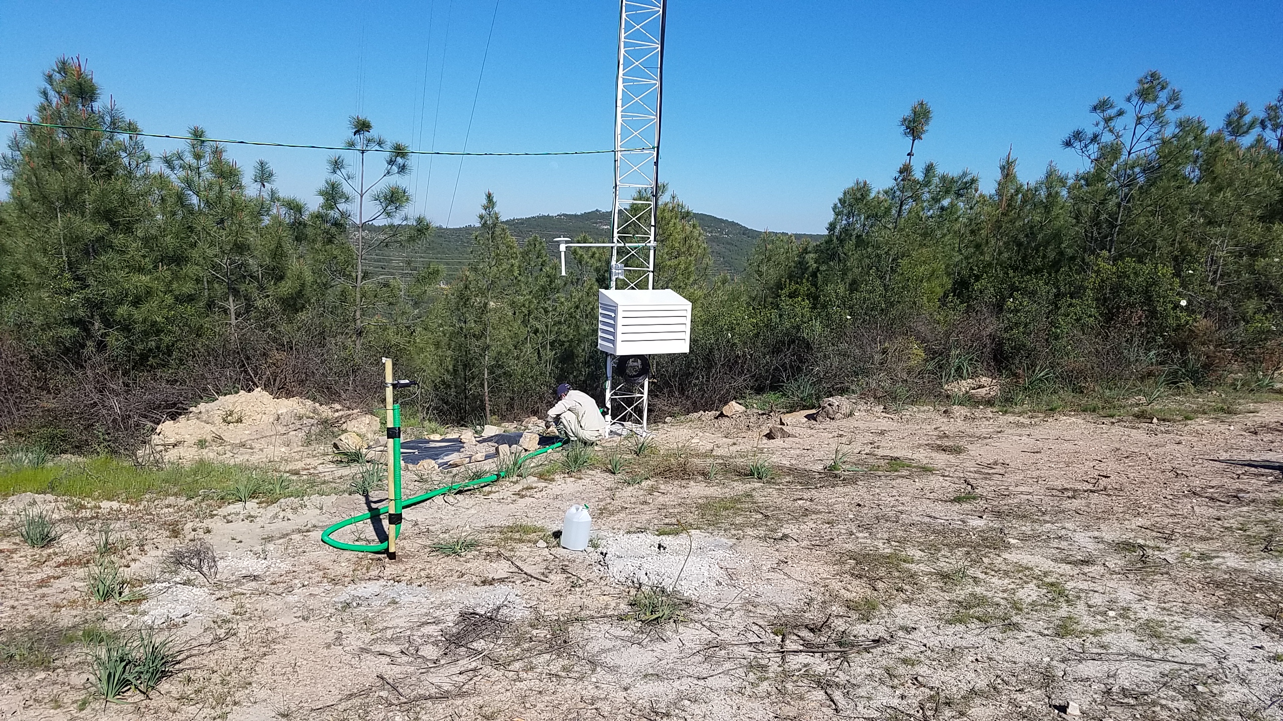MORE easterly winds! Up the ridge again. Two of the seismometers have locked onto satellites (SW06 and SW05) so we just taped them, move the GPS at SW05 higher on the met mast (to get away from electrical interference ) - so it is now at 5m... then went to SW03 - can not get the GPS to lock even after moving the GPS 6 m from the tower (and being VERY patient!) - decoded our only option was to drive a stake into the ground and mount it 5 m from the met mast AND HOPE! You can not begin to imagine how hard it is to drive anything into the groudn here!! (see photos). So fingers crossed (it does sporadically lock but not every duty cycle). Oh and while we were up on the ridge the NCAR team cruised by - just to prove they are here and working see photo below!). Visited the Orange Grove site - all running well - live streaming from the Z423 unit and the Galion is working great... Then with some trepidation we wen to the Olice Grove - download data from the Z447 and APS and then .... DRUM ROLL please... tried the WireSHARK connection - and yep sure enough the SpiDAR IP # had changed... but we were able to find the new number and to ftp data - the system has been running abit sporadically but Houston we have access and DATA! So not such a bad days work! We finished early (around 6pm) had a nice shower, worked on this blog and now are off to have a smashing dinner in the Herdade restuarant - Cheers!
