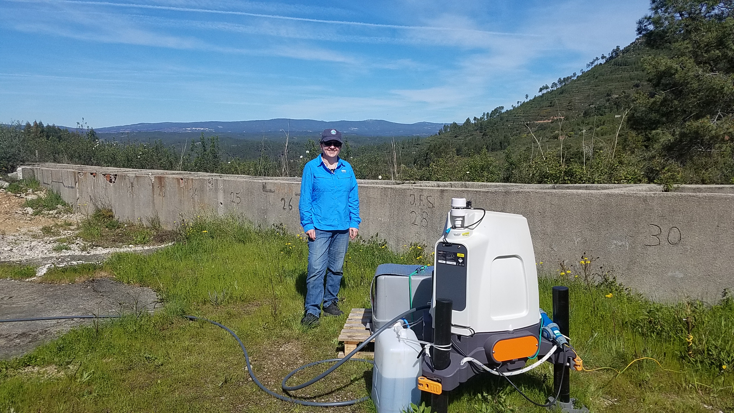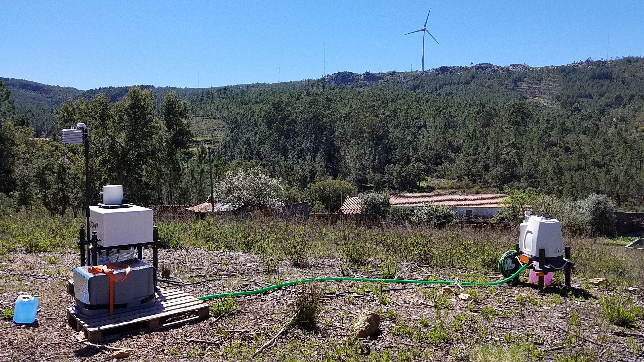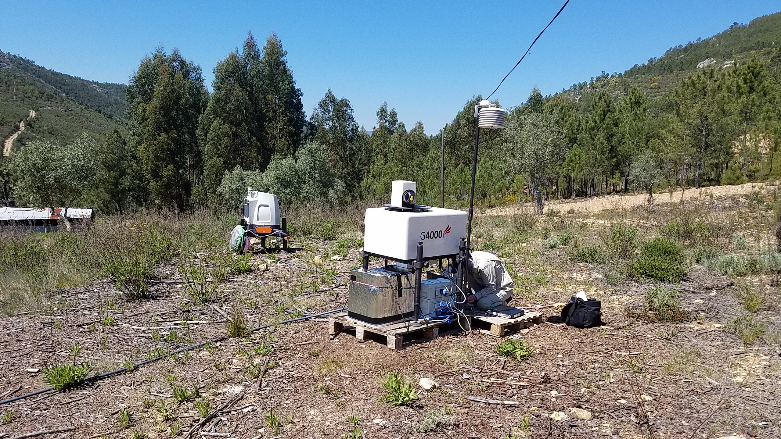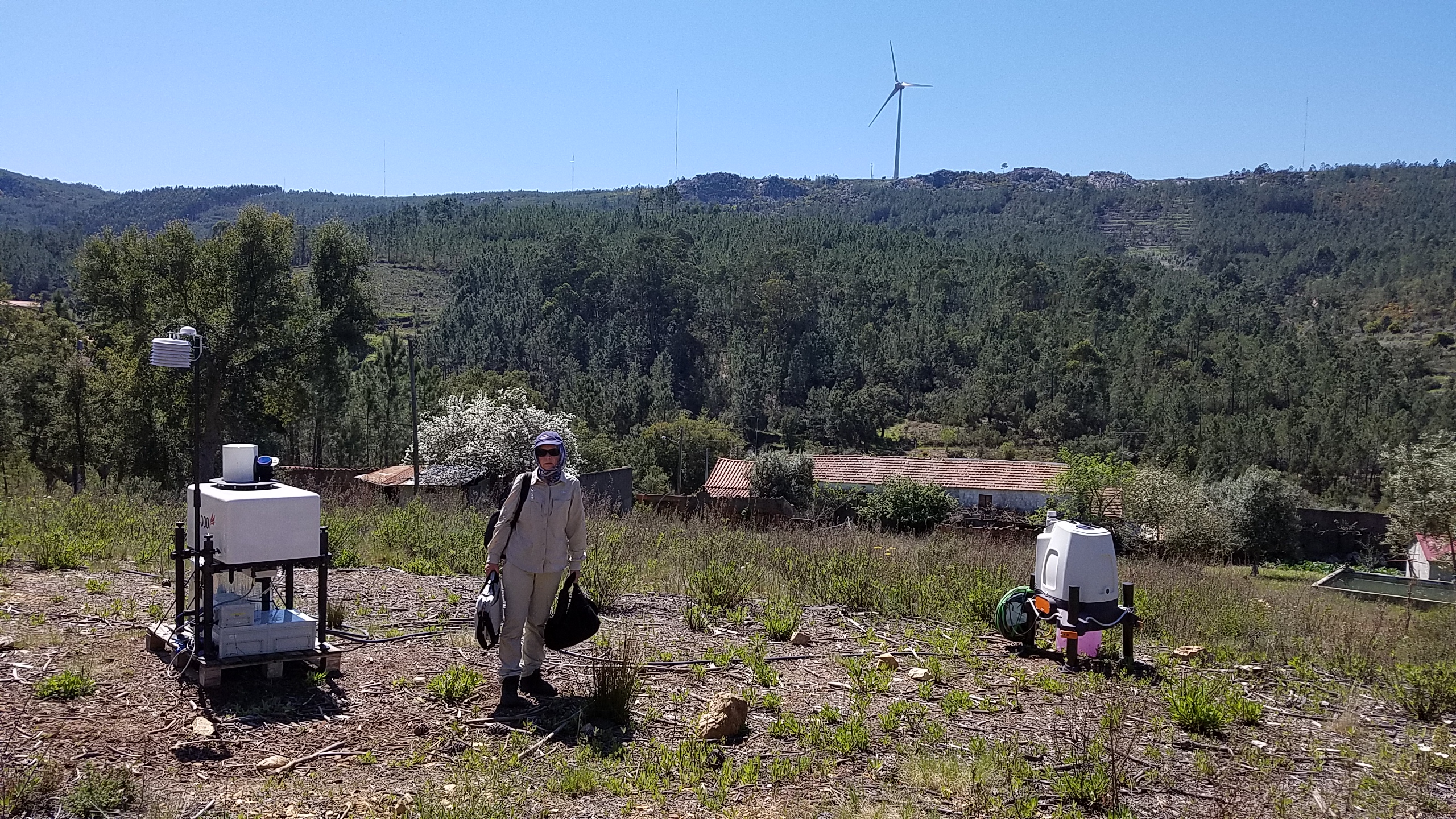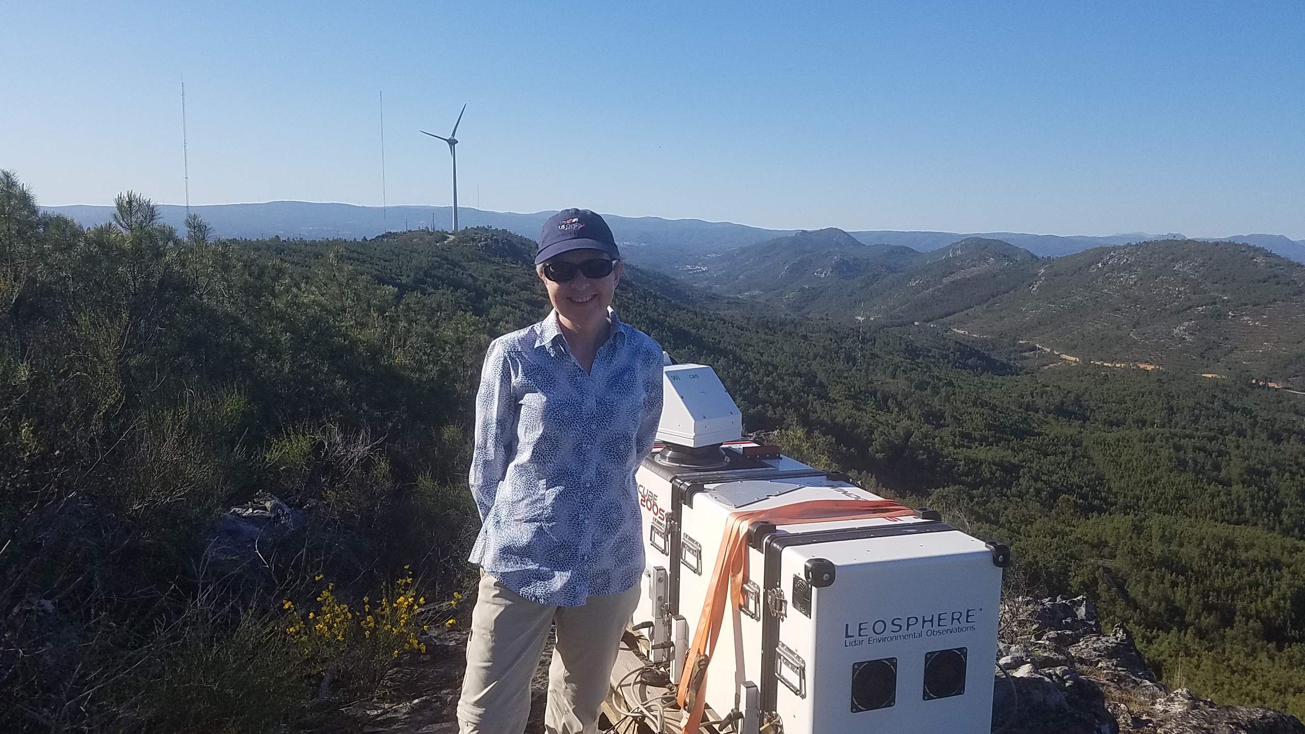Up early and out to Ops center, where Jose Carlos Matos (from INEGI) kindly delivered our LAST piece of equipment that we will deploy at Perdigao - our Aerodynamic Particle Sizer... then off the Orange Grove site where Rebecca was reunited with the Galion and ZephIR 423. A little bit of bad news - the fuse had tripped on the extension cord and so the systems had stopped (this seems to maybe related to the heat) - so the solution - remove the fuse!! The very good news - we have lots of data over this last month and we have managed to establish live streaming with Z423! After a nice lunch with JCM we were off up the ridge. The DTU wind scanners are in fantastic locations (photo below!) and the 100-m mast (operated by ENERCON) is completely finished and instrumented. Less optimistically the SpiDAR had ceased data collection as had the seismometer at that mast (SW06) - the issue seems also to have been the fuse on the extension tripping - the solution - same as before -- remove it (the circuit is fused anyway! in the box.. so no danger :-).... During most of the day winds were easterly, but by end of the day the winds had turned to become SW when we stopped by the Orange Grove site to check on the live data streaming from the Z423 unit). As of 8pm we are bushed and off to get some dinner and sleep... (Side note: ENERCON have deployed a transect of microphones the eastern end of which is just across the road from the Orange Grove).Some details about the data availability: