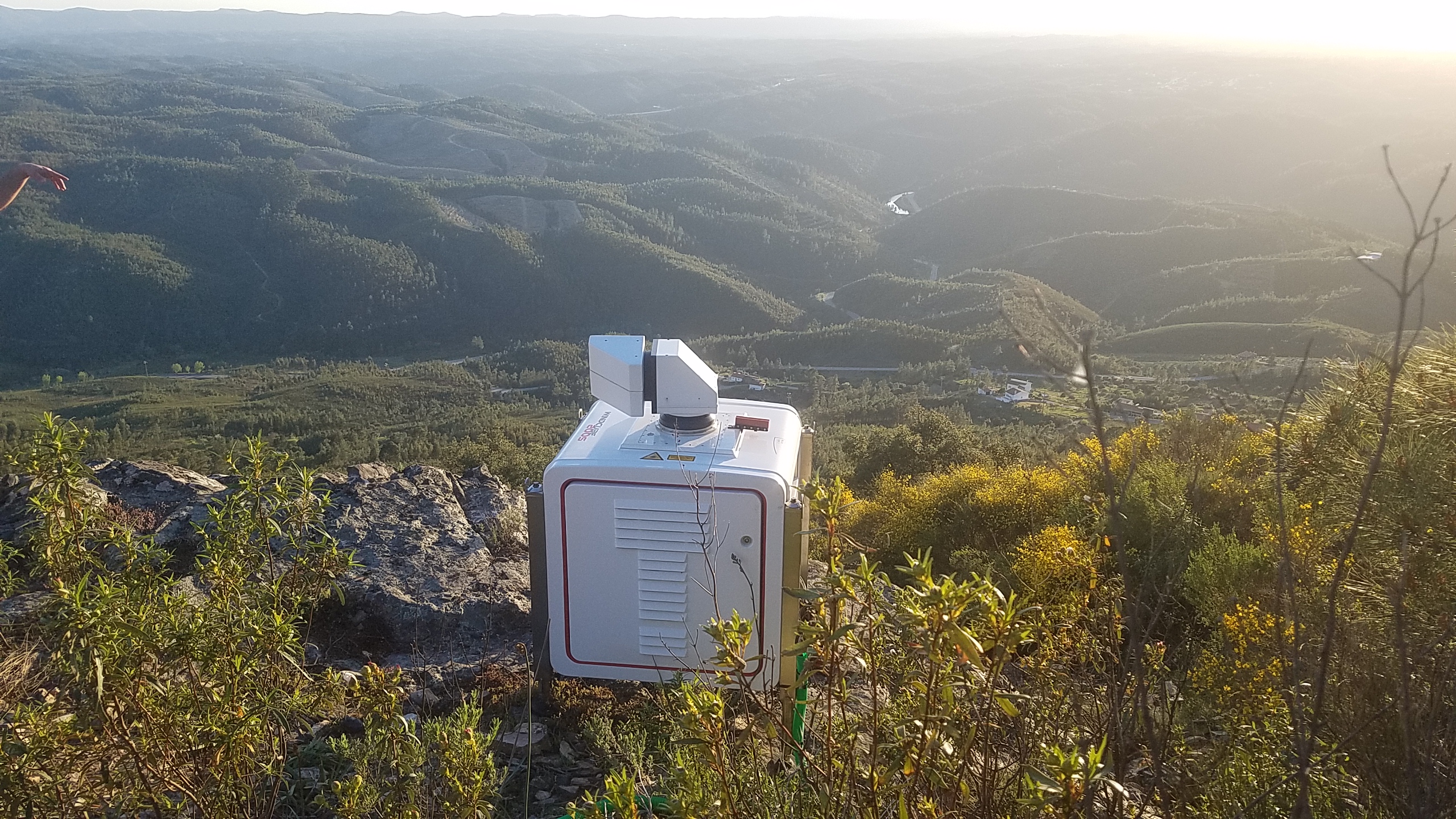 The Forwind wind cube lidar located near the 100-m mast on the SW ridge and looking west of the valley (out over Ladeira, when the ZephIR Z447 unit is located))