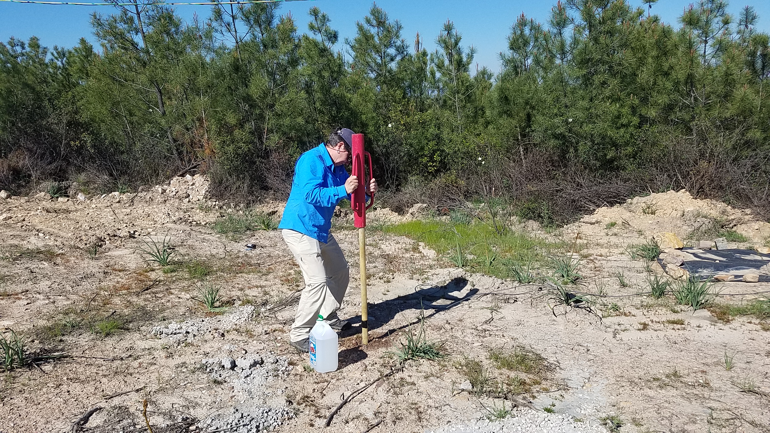 Driving the stake into rock-hard soil and rock at SW03!