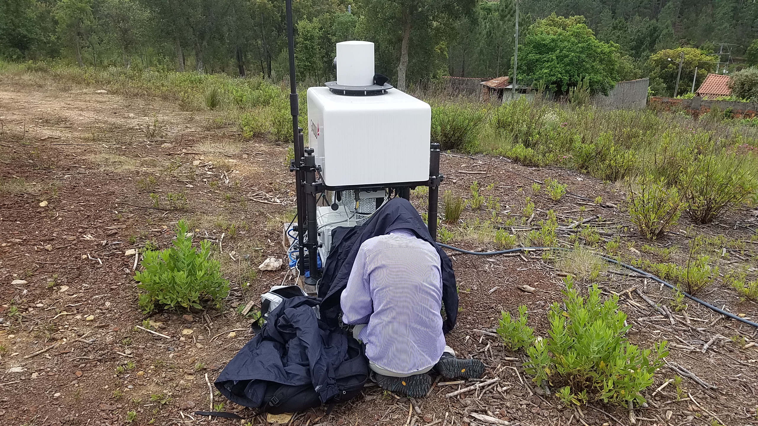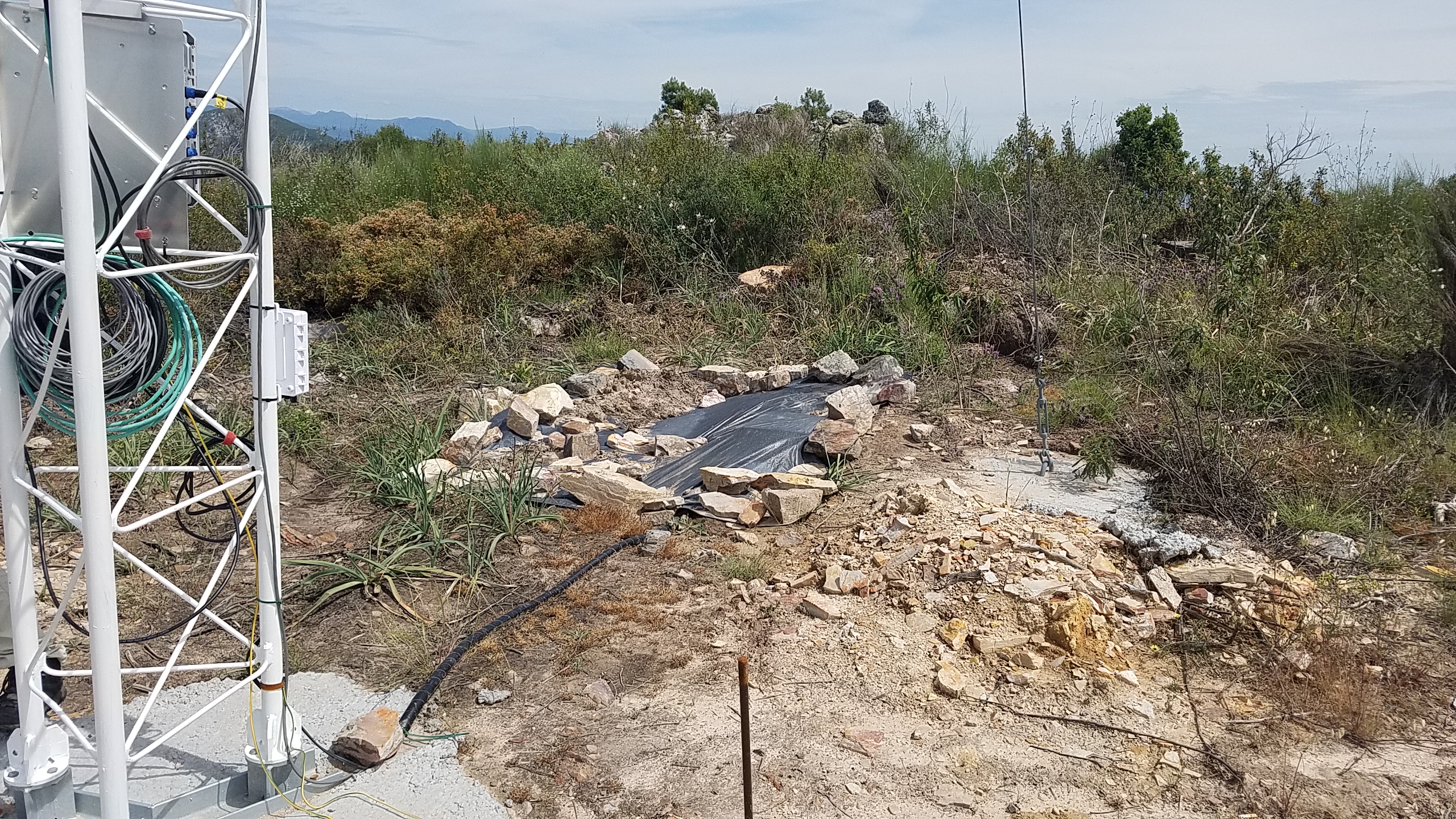 Met with Steve O and a crew of volunteers and went to install his 'ladder' tower on the RiSE transect... Then went to the Olive Co-op. We think a partial explanation for the SpiDAR not writing all files is the storage cards made be close to capacity (unfortunately can't verify this since the system will ONLY allow Filezilla access!) so we cleaned off some old data in the hope this will free up space. In the afternoon the temperatures REALLY soared (>37 C) - the search for shade become important for us and unfortunately we had the first thermal shutdown of the Galion and a near thermal shutdown of the APS and us! (Oh and in case you are wondering - long-sleeved blouses because I got dreadfully sun-burnt yesterday!) Other notes: Galion thermal shutdown was at 14:22:56 UTC. Some details of major 'interuptions' in the Galion data; Started measuring 01/25/2017, shutdown on 02/21/2017, power cut 03/10/2017-03/16/2017 and 03/18/2017-03/22/2017, 03/30/2017-04/02/2017, 04/30/2017, 05/05/2017, 05/11/2017-05/12/2017, and thermal shutdown 05/16/2017 (all others were power interuptions)